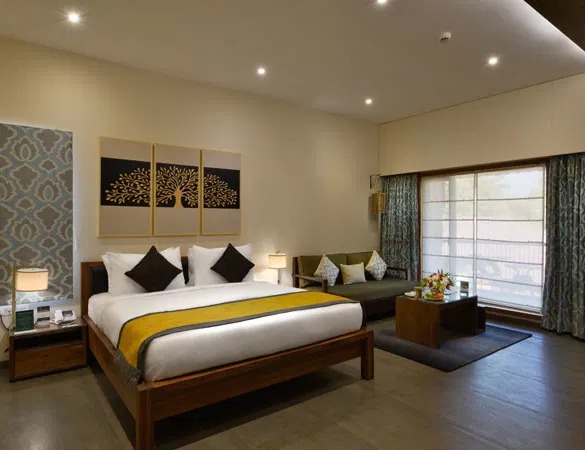Call now whatsapp us Madhubhan Resort & Spa offers luxurious accommodations amidst lush gardens. The resort features multiple dining options, a full-service spa, and a fitness center. Guests can enjoy the outdoor swimming pool, tennis courts, and children's